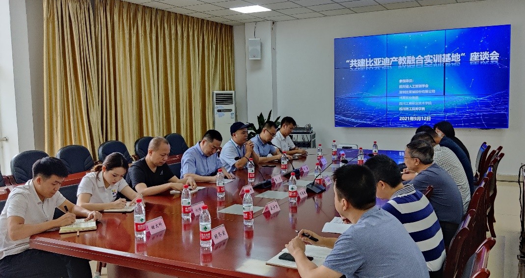为推进产教深度融合,9月12日上午,四川省人工智能学会副理事长彭宇、深圳比亚迪股份有限公司人力资源部协理王勇、鸿腾实业集团董事长颜玉峰等一行七人来学校洽谈校企合作事宜。院长李春明、副院长邓春生、机电工程系主任赖冬寅、对外交流与合作处副处长宋少荣、四川理工技师学院机电工程系主任杨建平等出席校企合作座谈会。